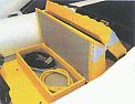 vorn am Kasten befestigt, so daß die Bank einen Deckel für
